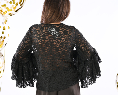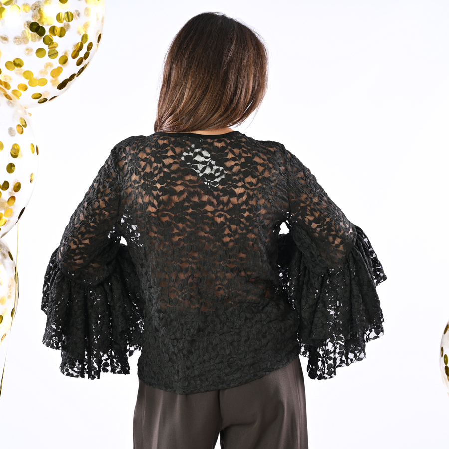 Maglia in pizzom con scollo a V con manica a trombetta