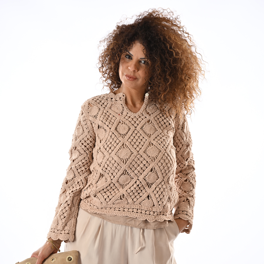 Maglia traforata con rose