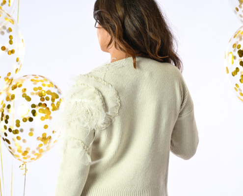 Maglioncino con piume e tulle