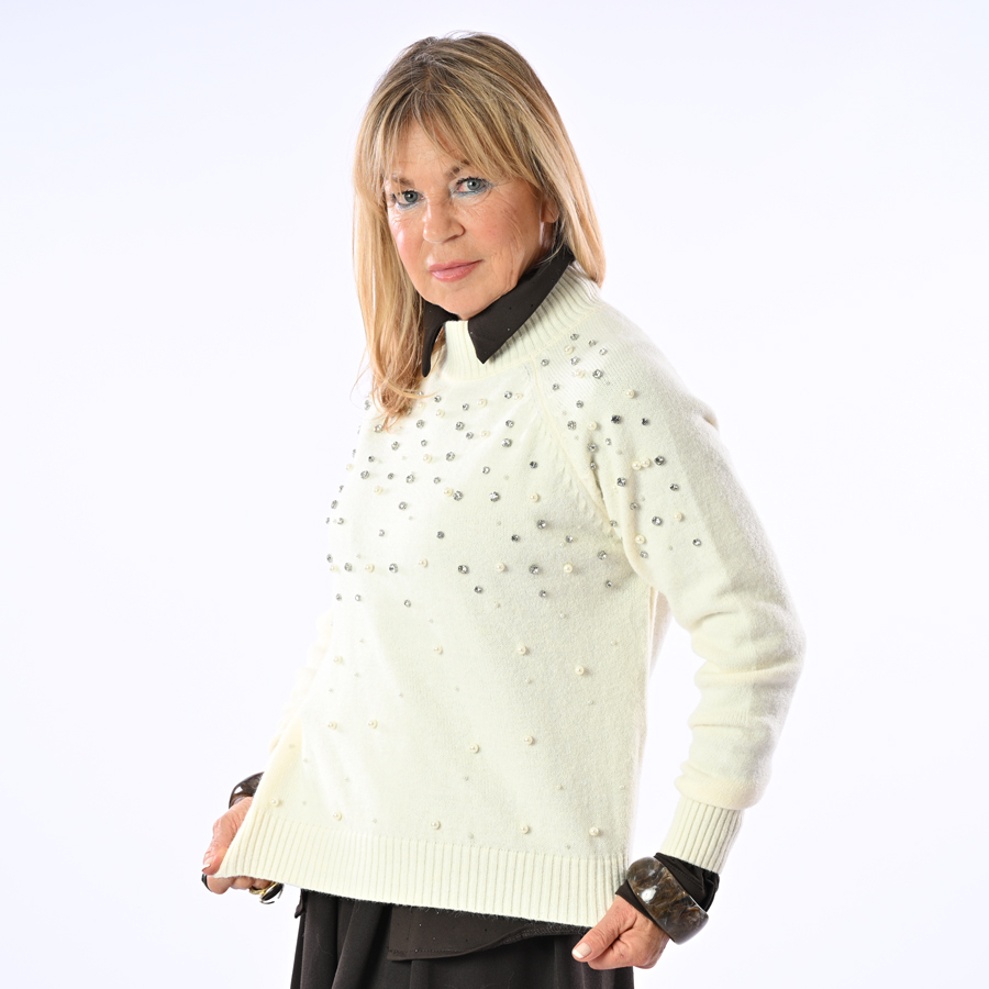 Maglione con strass e perline