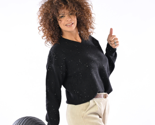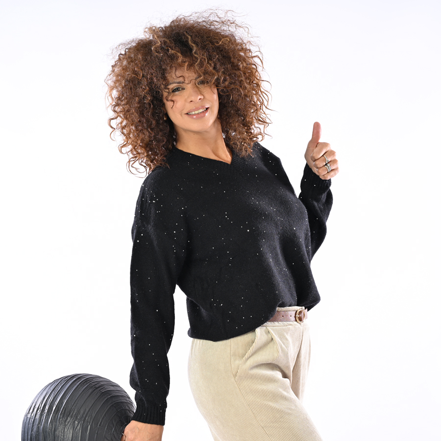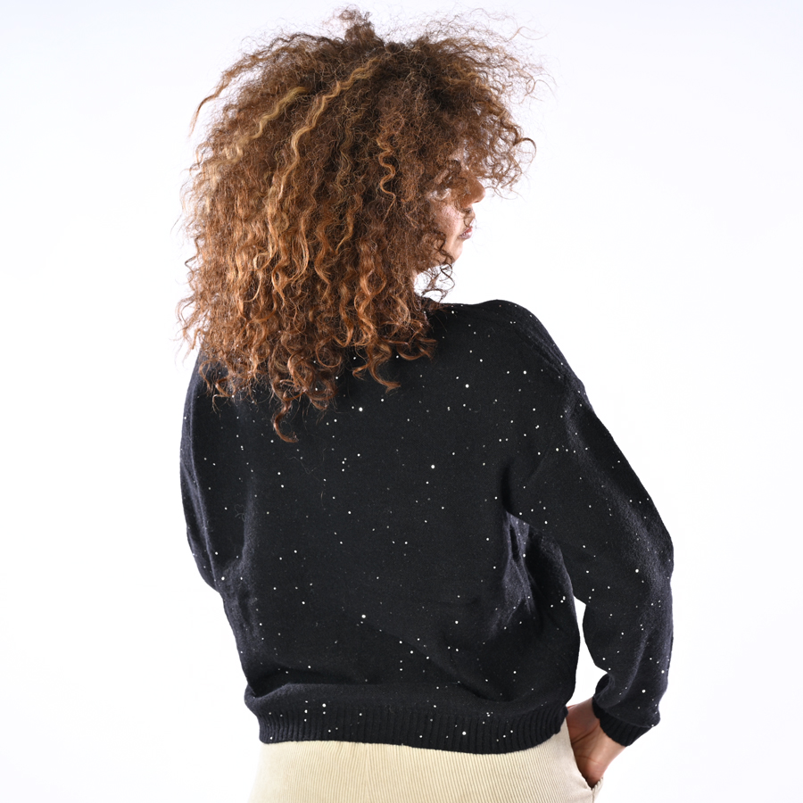 Maglione scollo a V con micro pailettes