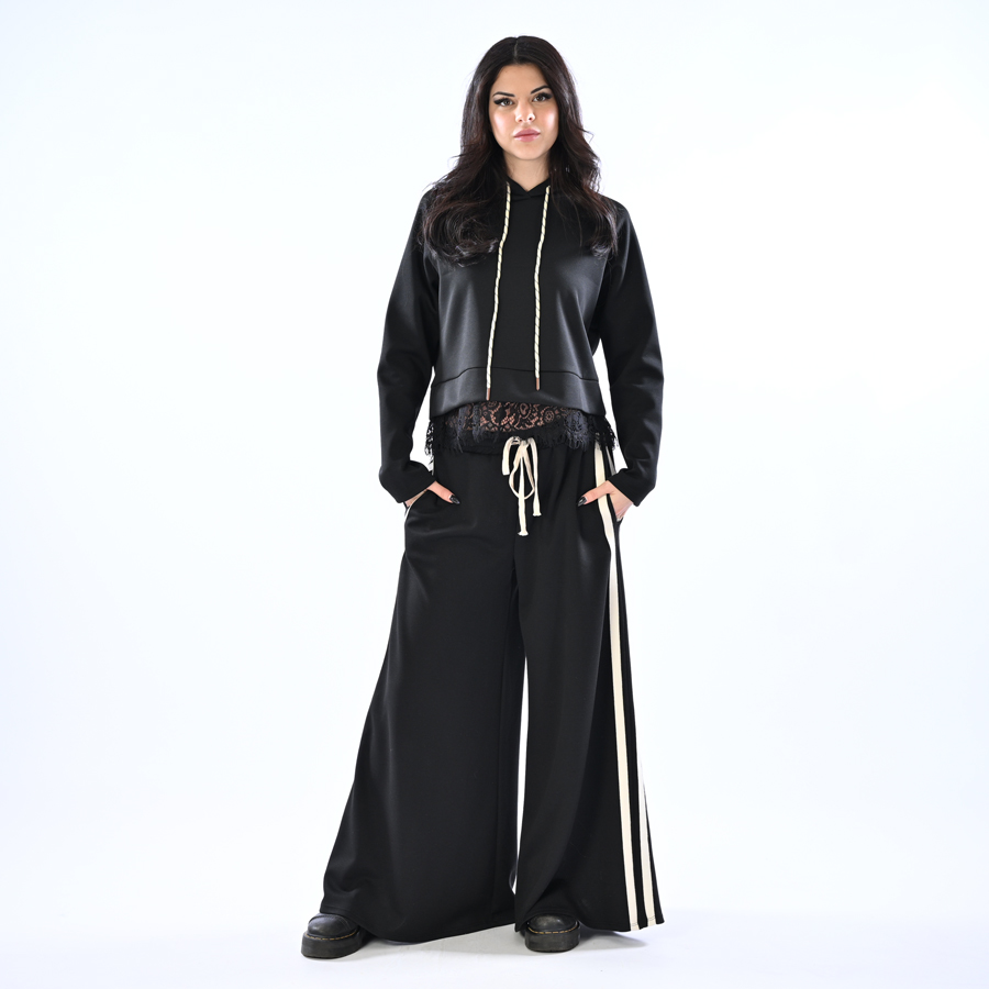 Pantalone sport con bande laterali con couilisse ed elastico in vita