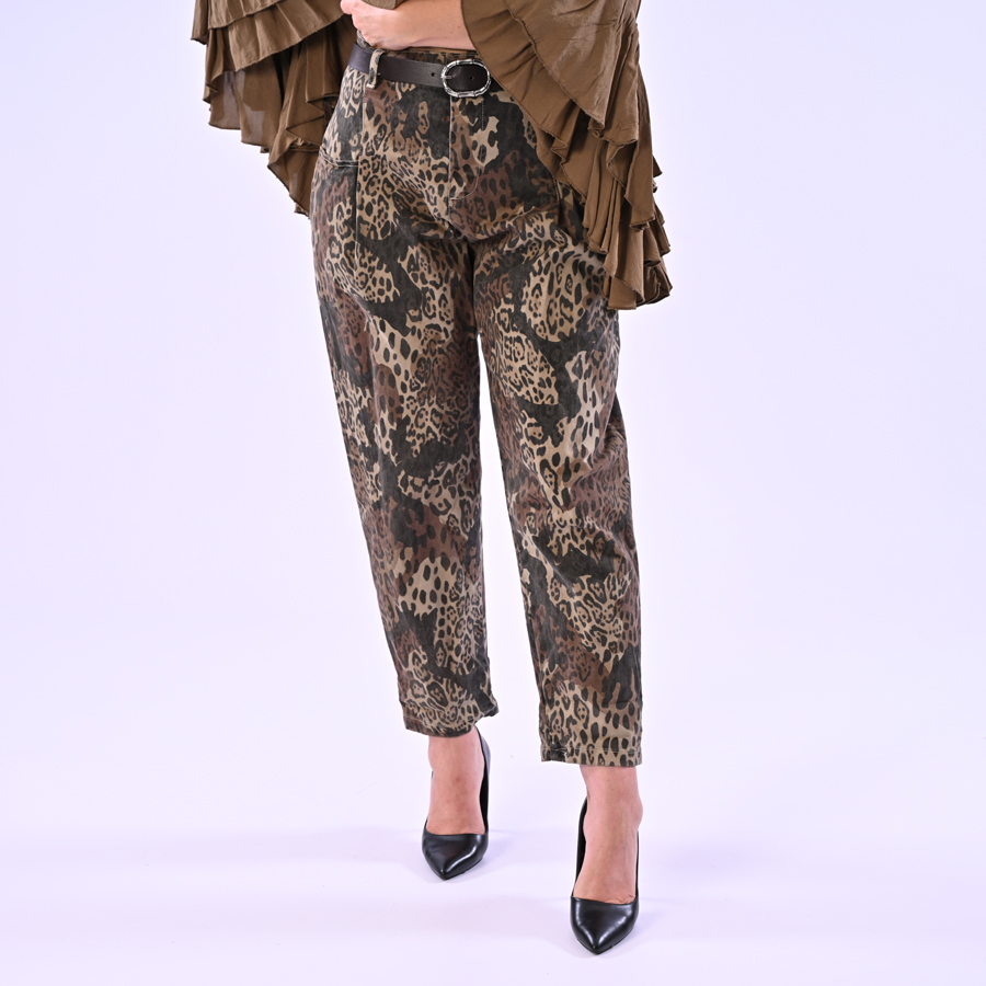 Pantalone maculato cavallo basso con cintura inclusa