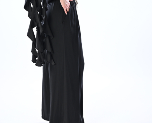 Pantalone con pences con coulisse elasticata in vita