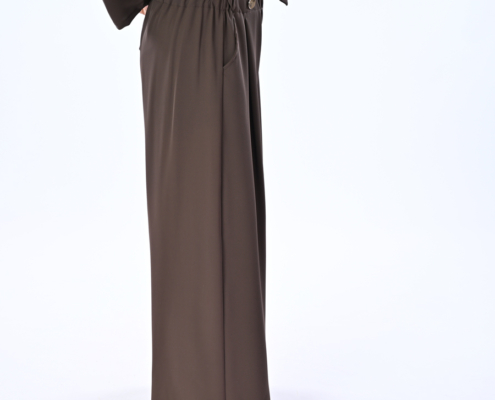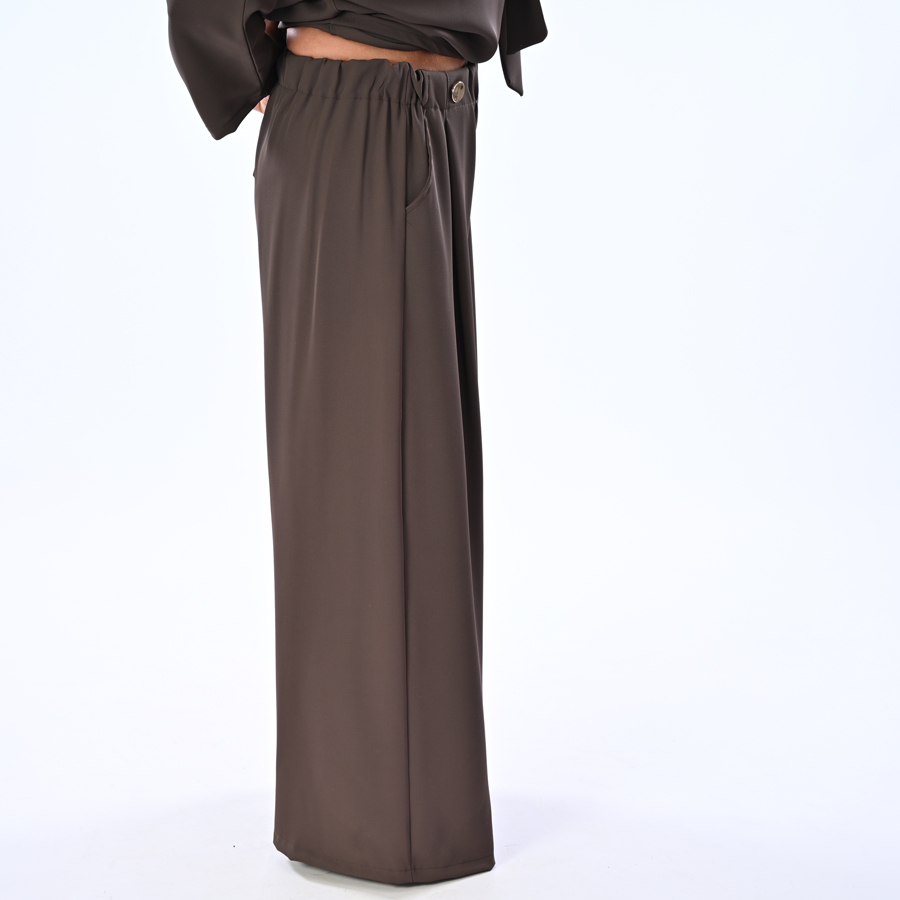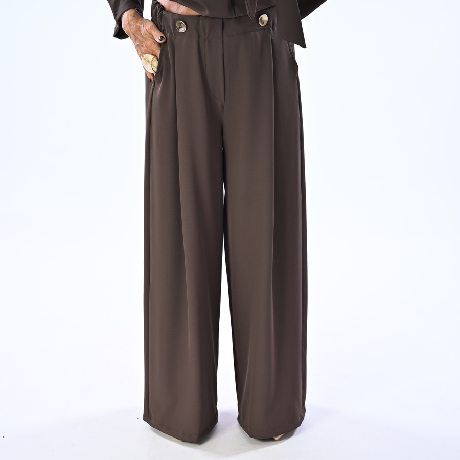 Pantalone a palazzo con pences e bototni oro
