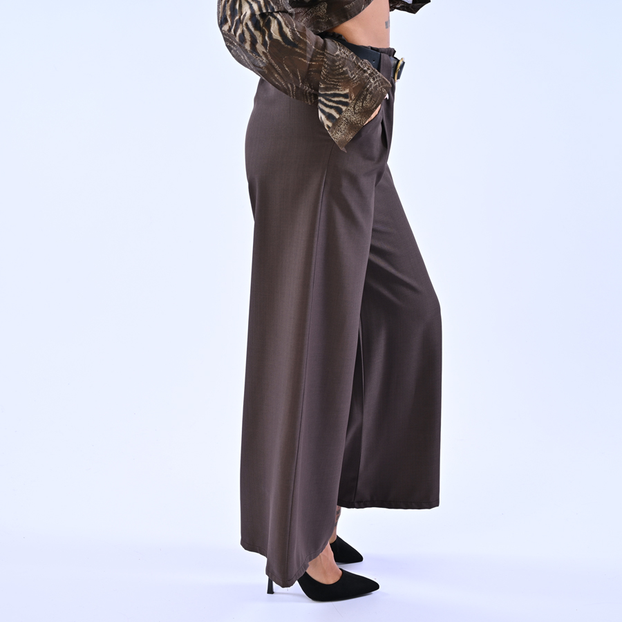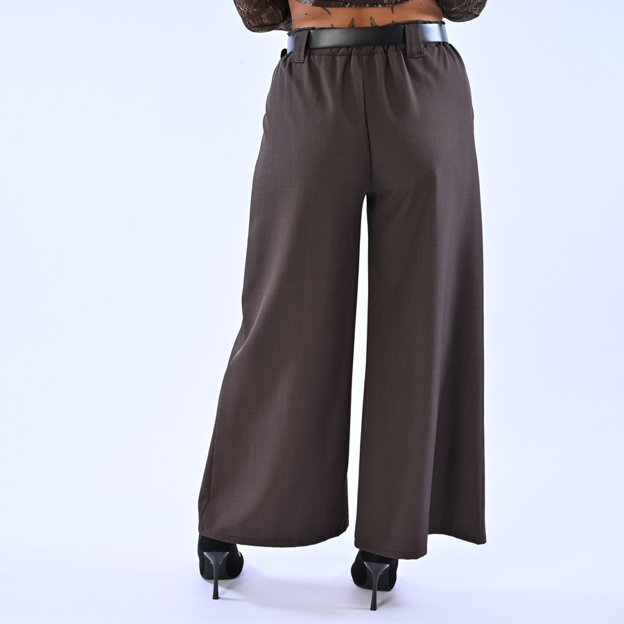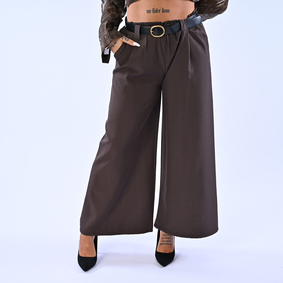 Pantalone a palazzo con elastico in vita e cintura incluso
