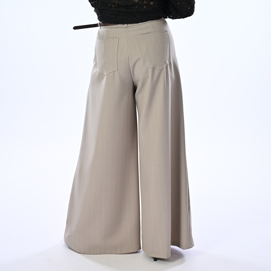 Pantalone gessato a palazo con cintura inclusa