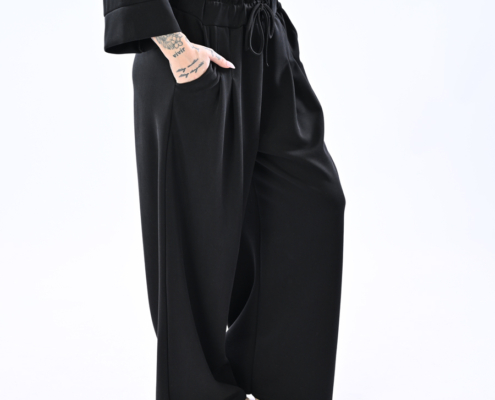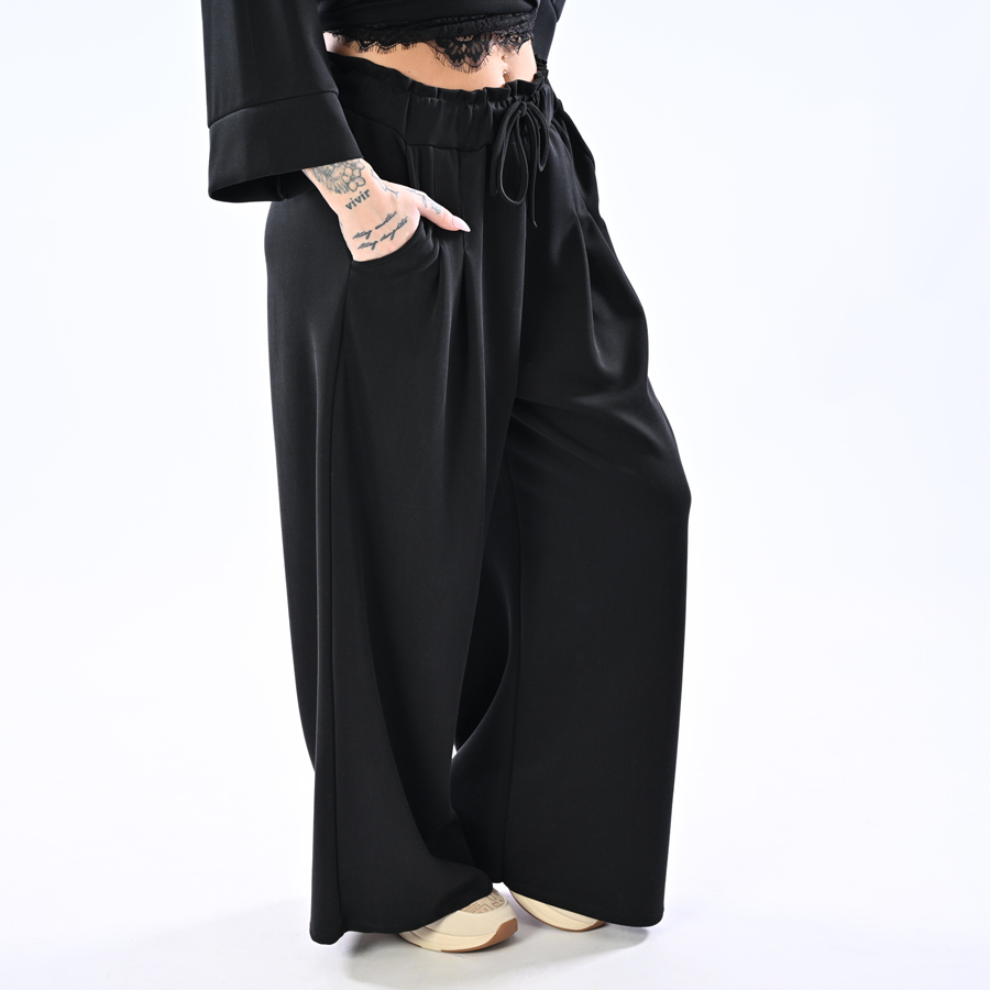 Pantalone sport a palazzo con elastico e coulisse in vita