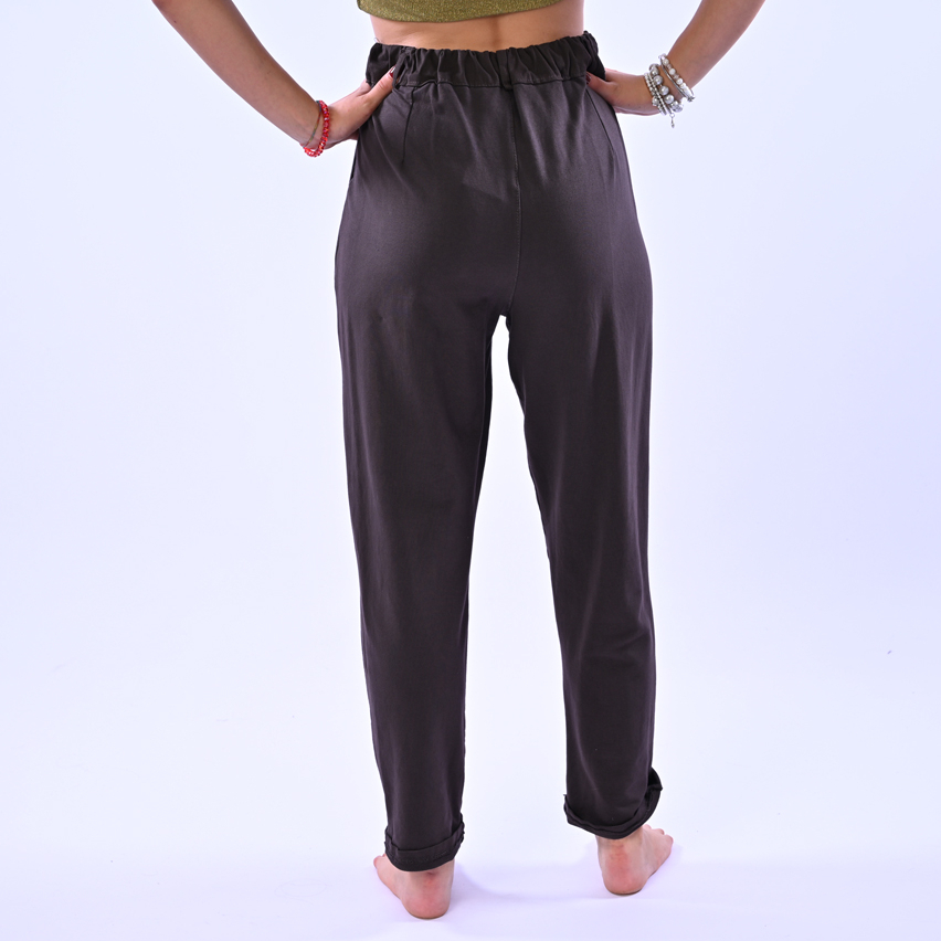 pantalone cavallo basso con bottone, cerniera ed elastico