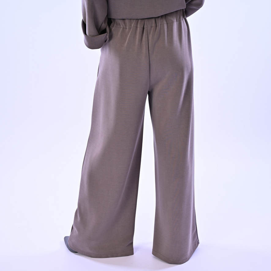 Pantalone a palazzo con elastico in vita, bottoni e pences