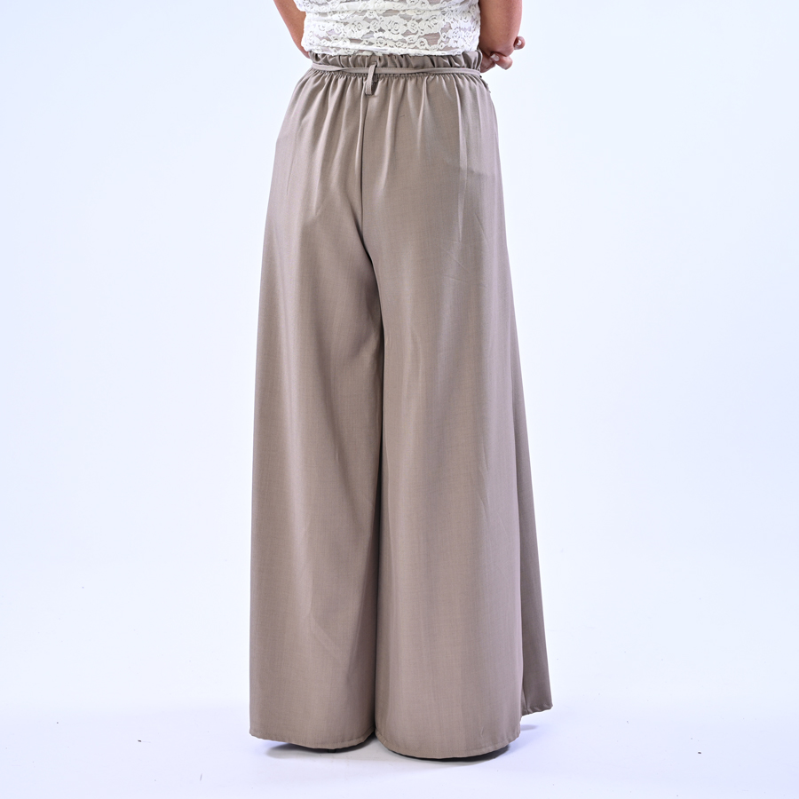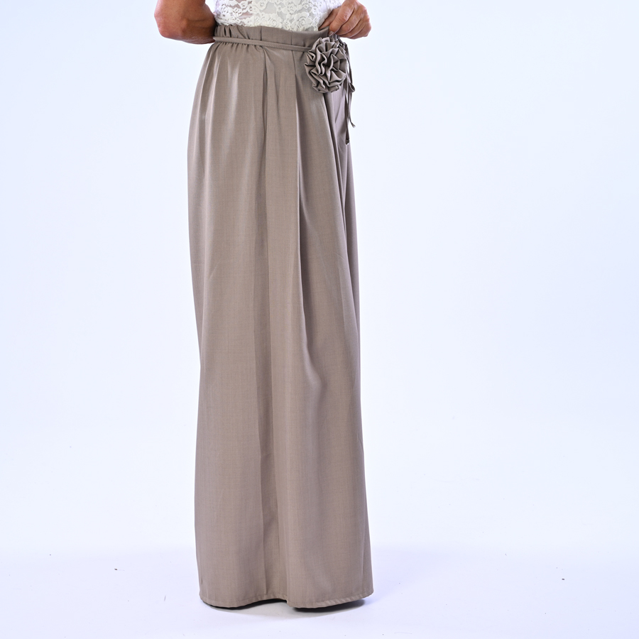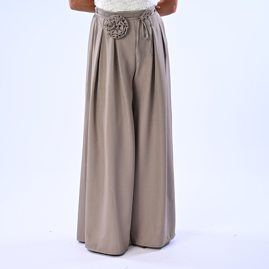 Pantalone a palazzo con elastico in vita e cintura fiore inclusa