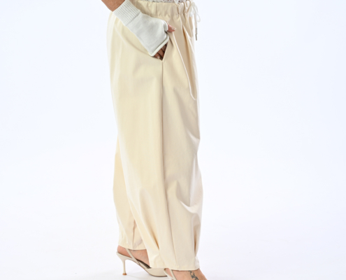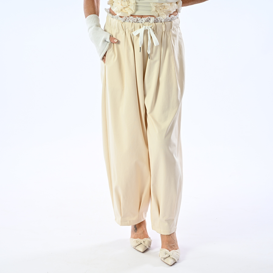 Pantalone sport con coulisse in vita e pizzo
