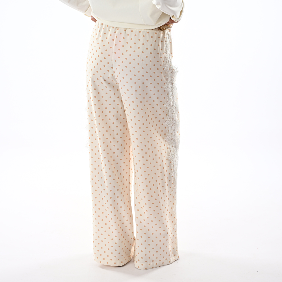 Pantalone a palazzo a pois con pizzo