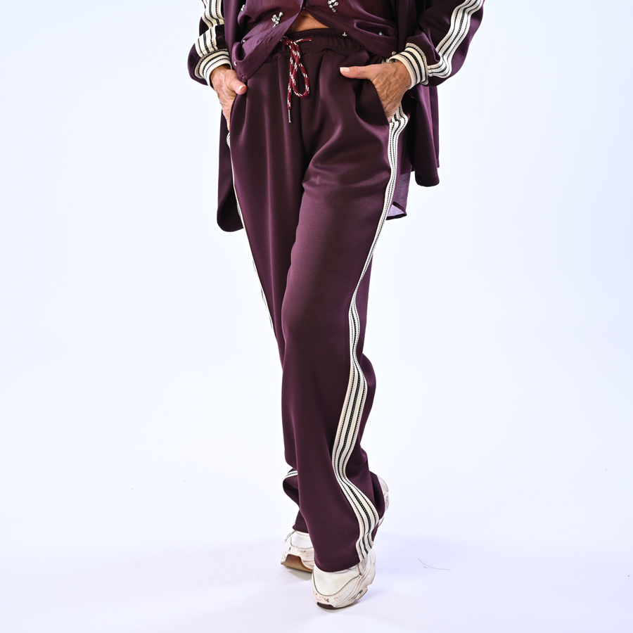 Pantalone con righe sul lato ed elastico in vita con coulisse