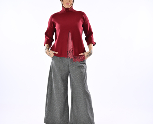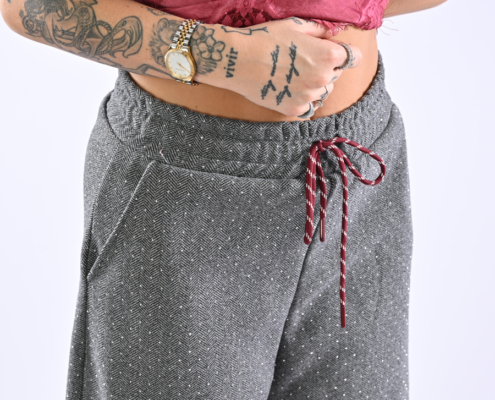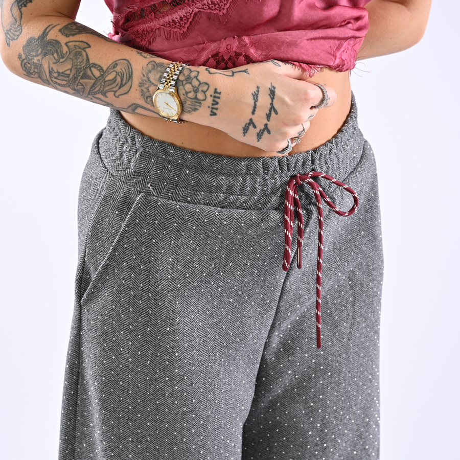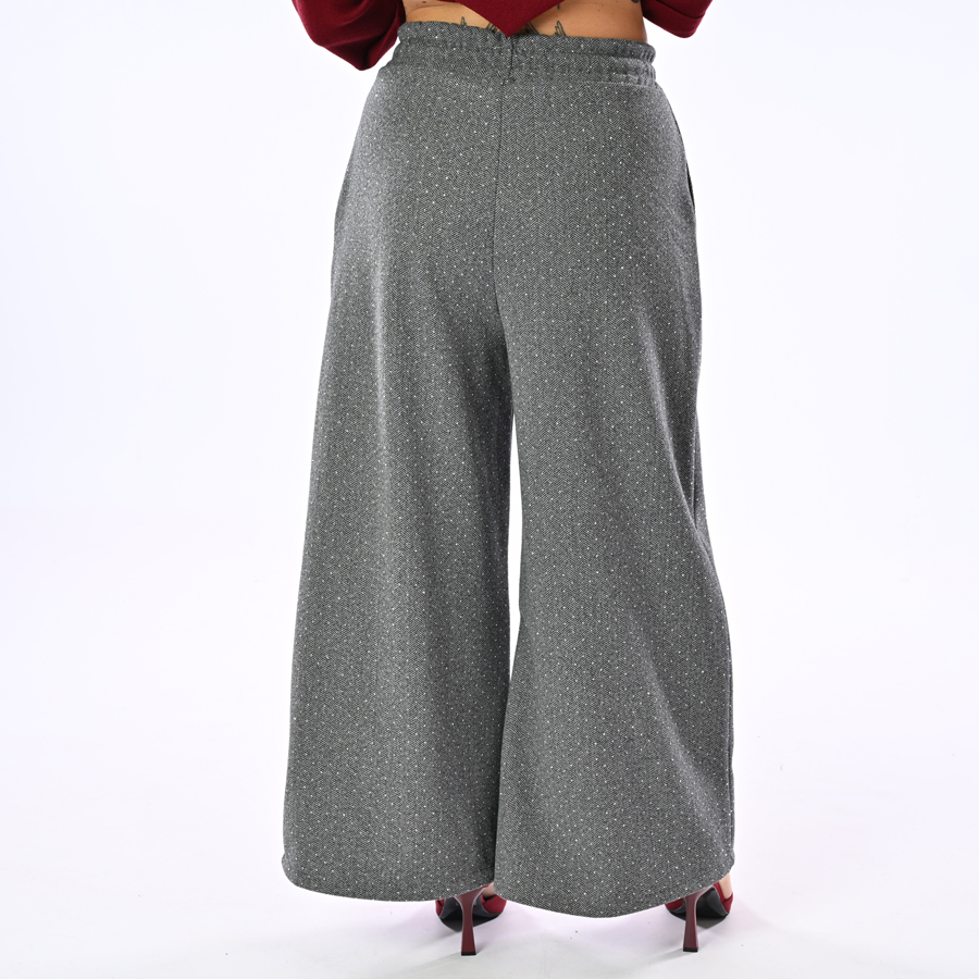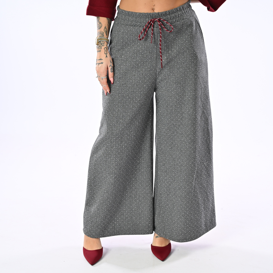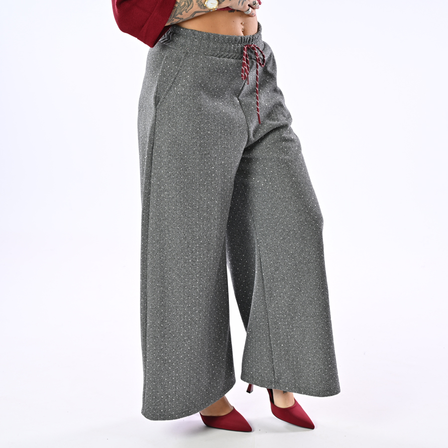 Pantalone a palazzo con strass ed elastico in vita on coulisse
