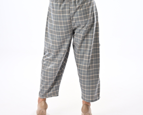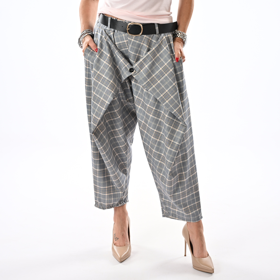 Pantalone incorociato fantasia tartan con cintura inclusa