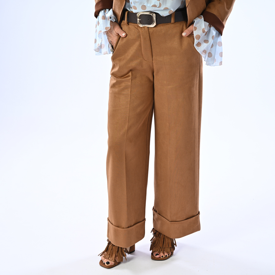 Pantalone in ecodainetto con cintura inclusa