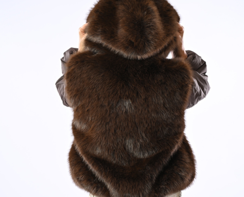 Piumino con ecopelliccia e cappuccio