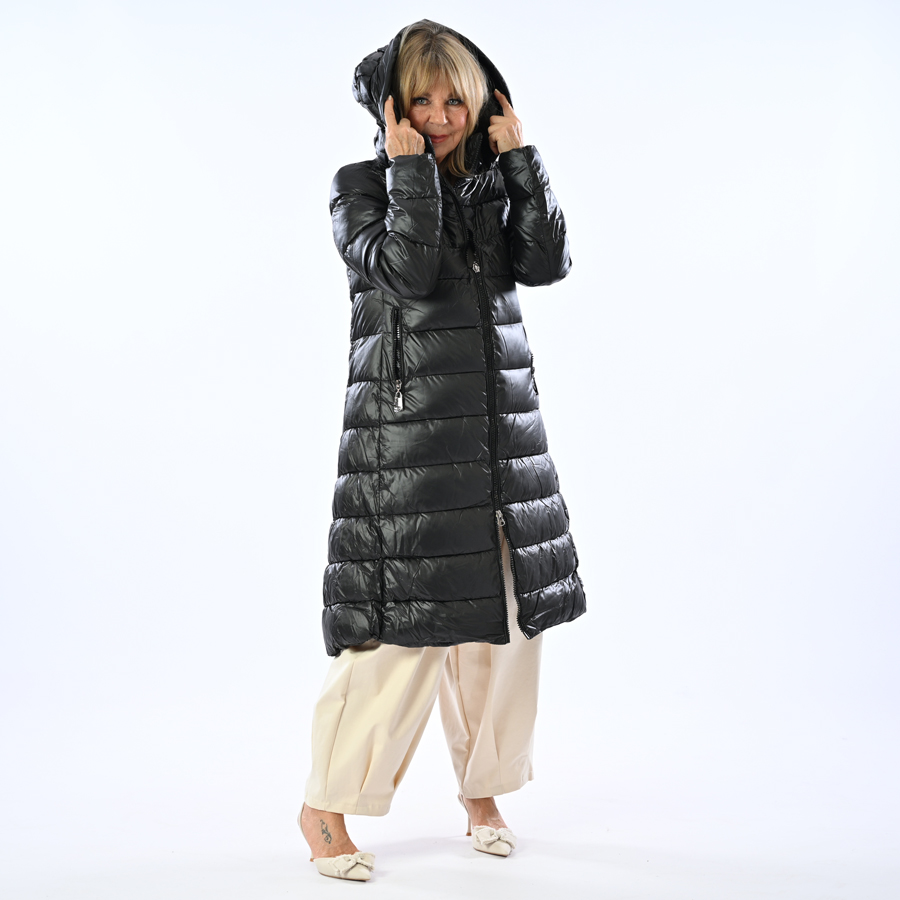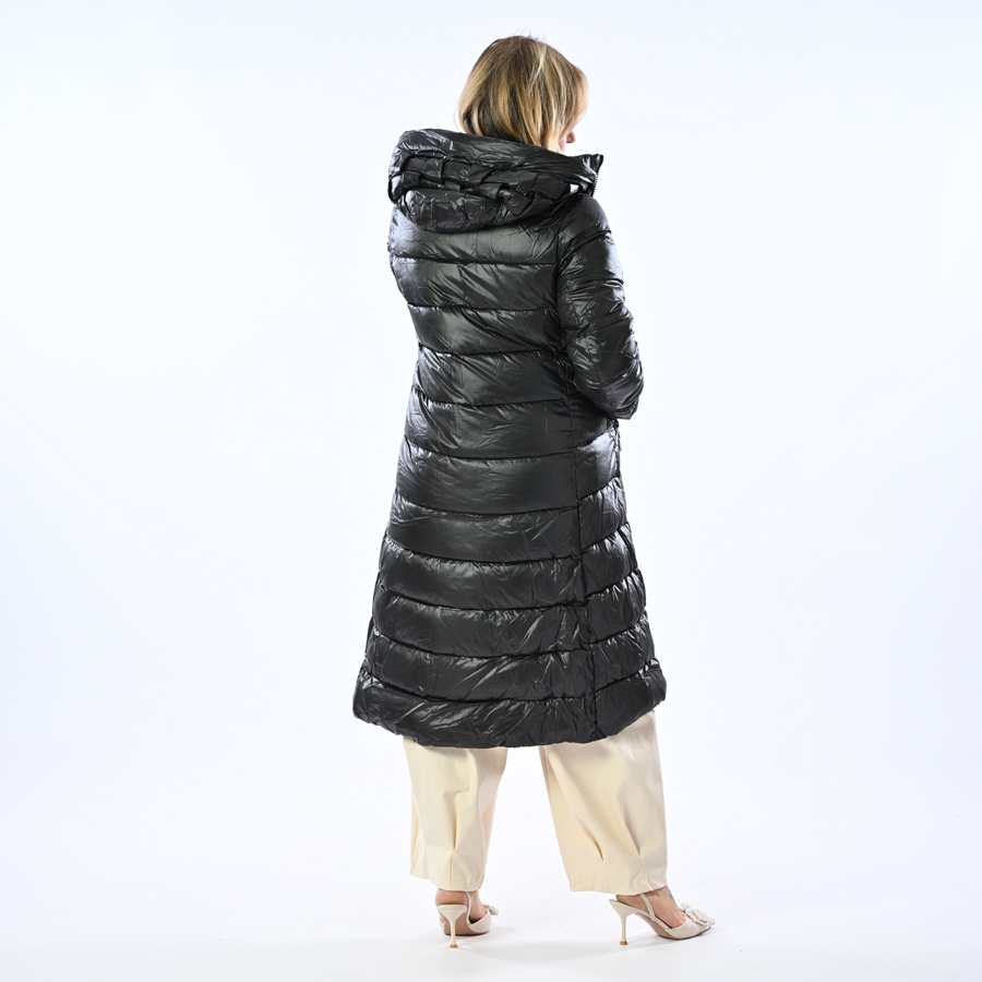 Piumino lungo con cappuccio