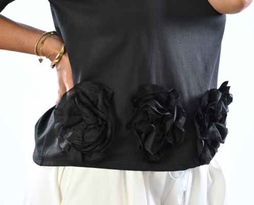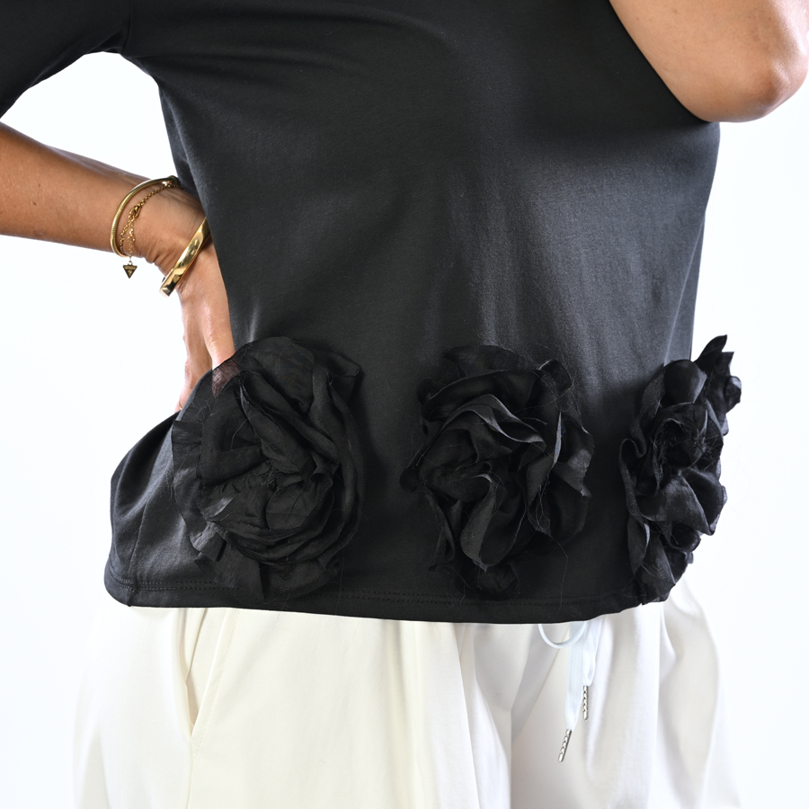 T-shirt con rose sul fondo